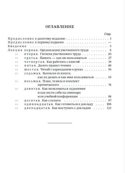 Навыки умственного труда, как и навыки физического труда, приобретаются упорным трудом, и единственно, чем наука может помочь выступающему на путь умственного труда - это указанием целого ряда правил теоретического и практического порядка, которые в состоянии облегчить завоевание навыков умственного труда. Изложением этих правил мы и предполагаем заняться в наших общих лекциях-беседах.(10-е издание, переработанное и дополненное).