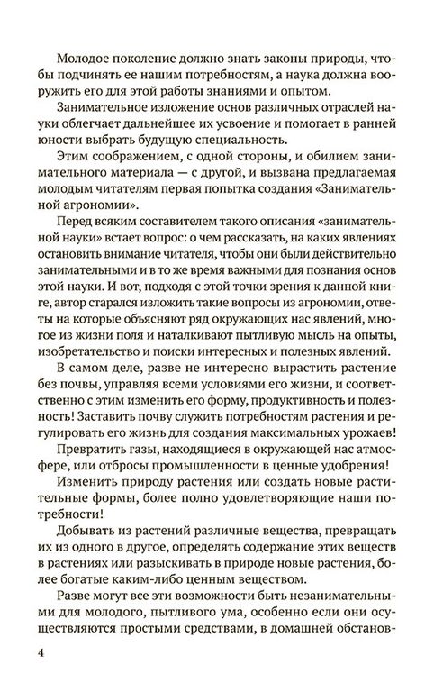 Агрономия – наука о сельскохозяйственном производстве – занимается исследованием растений, типов почв, созданием новых культур. Это увлекательный мир законов природы и способов бережливого взаимодействия с окружающей средой. Знание агрономии поможет ребенку в создании своего собственного прекрасного сада, причём не только на открытом пространстве, но и в домашних условиях. Как правильно поливать грядки? Как добыть песок из почвы? Как из одного клубня вырастить несколько кустов картофеля? Как добыть крахмал из картофеля? Как превратить крахмал в сахар? Чем могут быть полезны сорняки ? Как приготовить молоко из растений? Издание содержит подробное описание множества интересных опытов, позволяющих выращивать растения и овощи в любое время года.