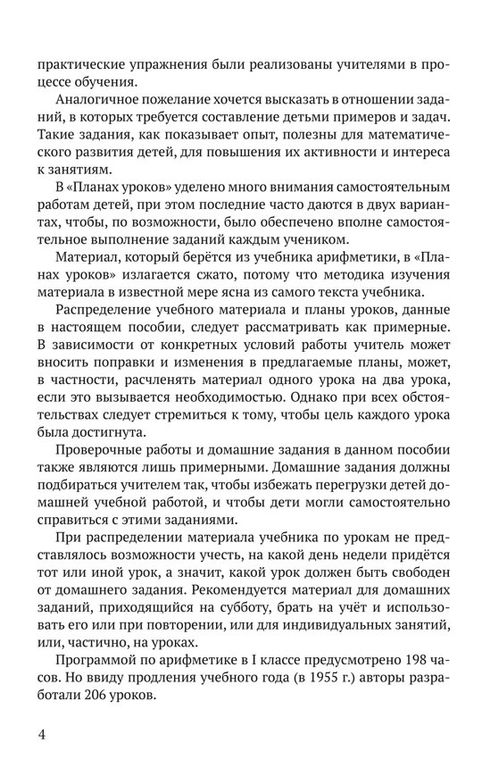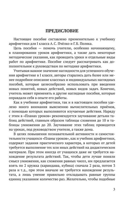 Предлагаемое пособие составлено применительно к учебнику арифметики для I класса А.С. Пчёлко и Г.Б. Поляка и может выступать в качестве дополнительного руководства в преподавании дисциплины. Разработанная программа обучения состоит из 206 уроков, которые распределены по учебным четвертям. При необходимости учитель вправе корректировать структуру любого урока по своему усмотрению – например, уделять больше времени заданиям, вызывающим трудности. Для развития математического мышления ребенка в пособие включены как задания на самостоятельное составление примеров и задач, так и упражнения практического характера, не требующие нахождения результата действий. Постепенное увеличение уровня сложности изучаемых тем позволяет находить альтернативные методы решения задач на основе ранее полученных знаний. Для закрепления пройденного материала даны примеры самостоятельных работ. Пособие предназначено для учителей начальных классов и родителей, чьи дети находятся на домашнем обучении.