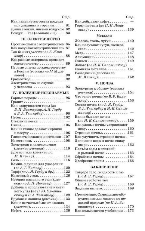 Учебник по неживой природе знакомит школьников 4 класса с разнообразием окружающего мира, богатством природных ресурсов и их значения для хозяйственной деятельности человека. Основной материал курса излагается в статьях, которые описывают свойства воды, воздуха, камней и металлов, почвы и электричества. Теоретическую информацию следует изучать после практических занятий – экскурсий, наблюдений, проведения простейших опытов и экспериментов. Рассказы для чтения в живой форме знакомят детей с различными явлениями природы, недоступными непосредственному наблюдению. Для закрепления новой информации в конце каждой темы содержатся вопросы на понимание содержания. Интересные задания для самостоятельной работы можно выполнять как в классе, так и дома. Материал сопровождается иллюстрациями и подробными схемами. Издание будет полезно как учителям начальных классов, так и родителям, которые занимаются с детьми самостоятельно.